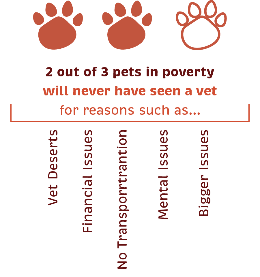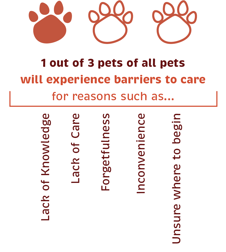 Reliable and unbiased resources are scarce when searching for helpful information regarding the health and well-being of pets. Most pet related internet searches result in advertisements and product placement from for-profit pet supply brands. Nearly ⅓ of pet parents experience barriers to care, and ⅔ of pets in poverty have no access to vets at all. Pet parents need a platform for accessible, reliable, unbiased information and support.